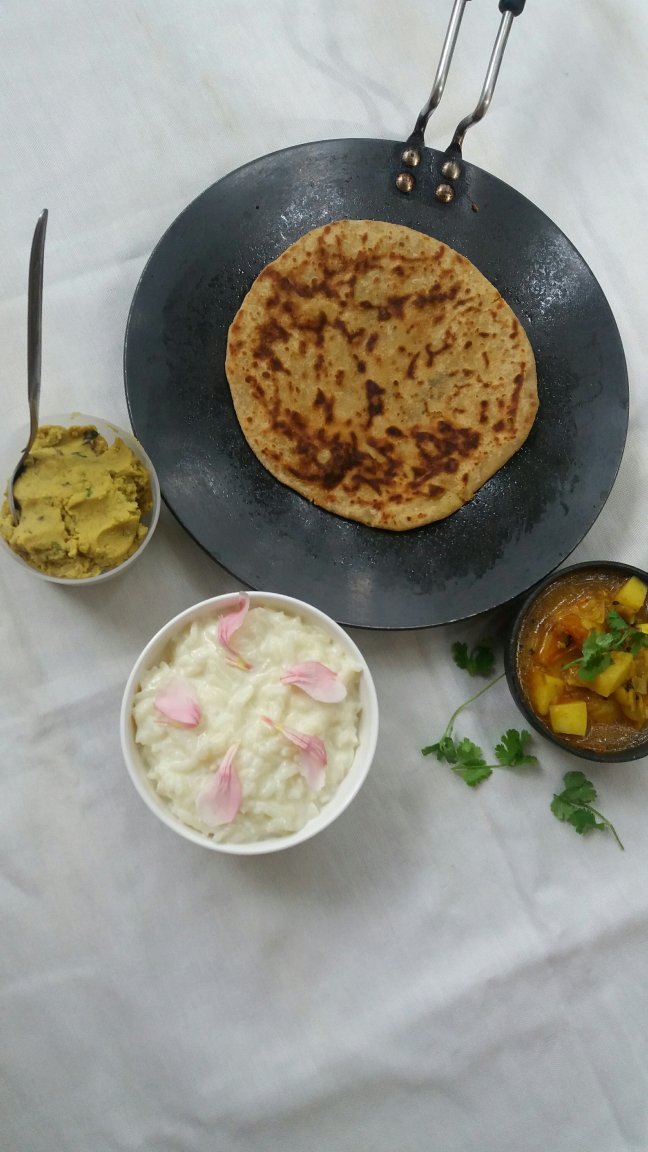 In our house its served with rice Kheer and Aloo ki sabzi
