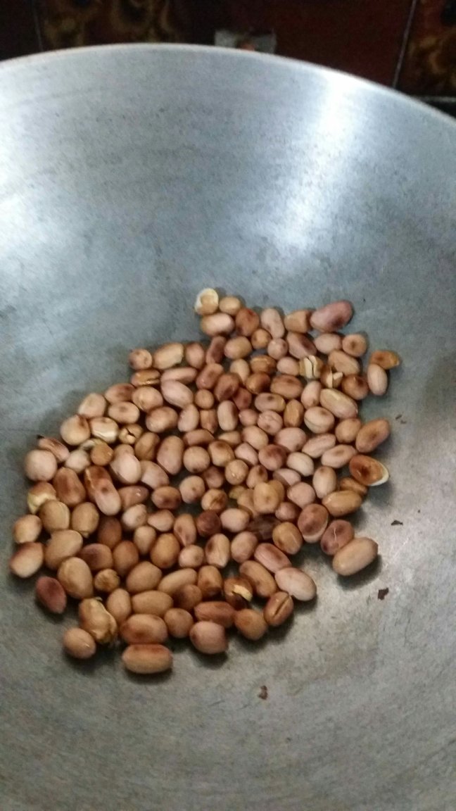- Let it cool down, crush them with your palm and remove the skin of groundnut