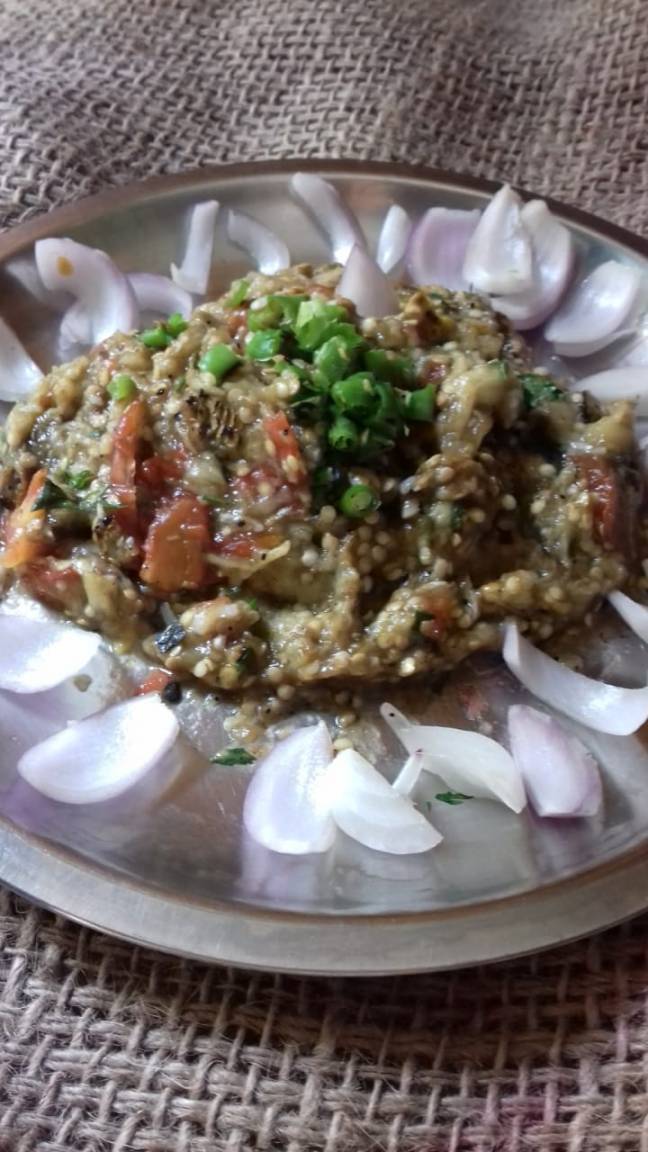 - Your Hare baigan ka bharta is ready to be served with roti or bread