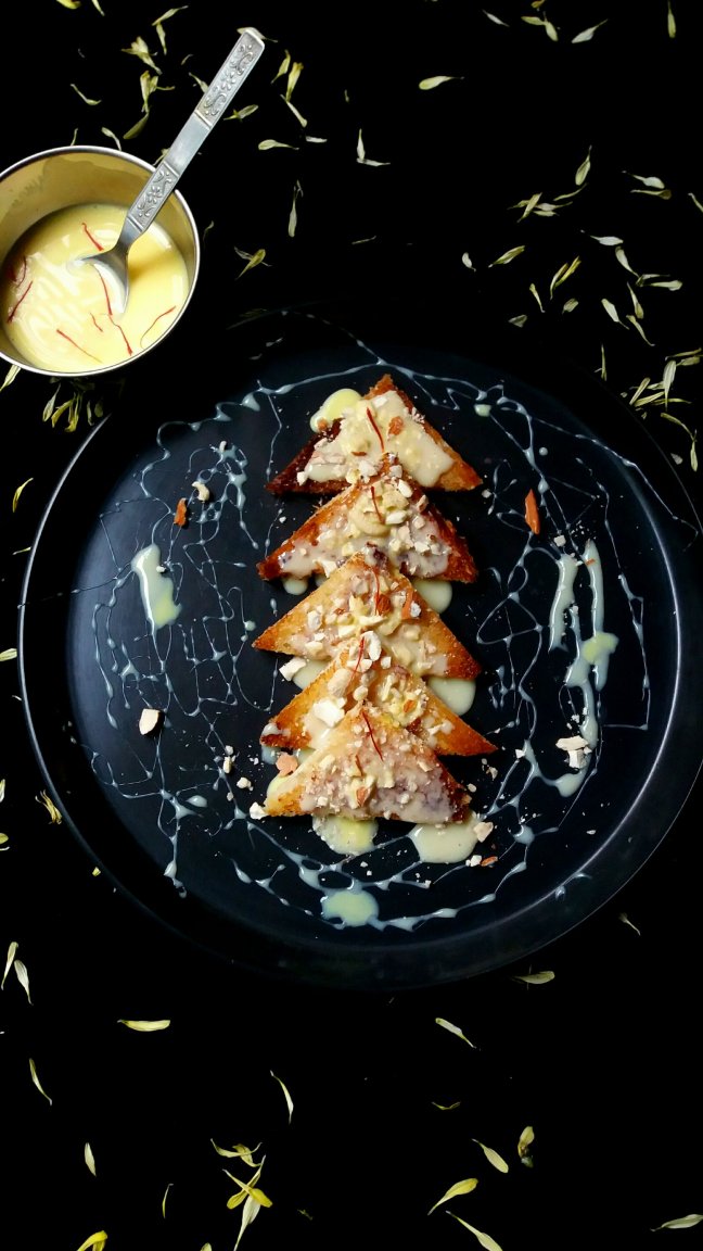 Double ka meetha is a complete nawabi dish from Hyderabad, double here is for the bread as we call bread double roti also,meetha is sweet.A very simple and quick dessert to make and serve if you have sudden guests in the house,this is different from shahi tukda where rabadi is used and here we are using milkmaid.Christmas has just gone, we all are heading for the year end being a little older and wiser☺and hoping the year ahead brings more luck and happiness to all with a good health. By saying, Christmas just remembered a personal experience which I would like to share with you all…