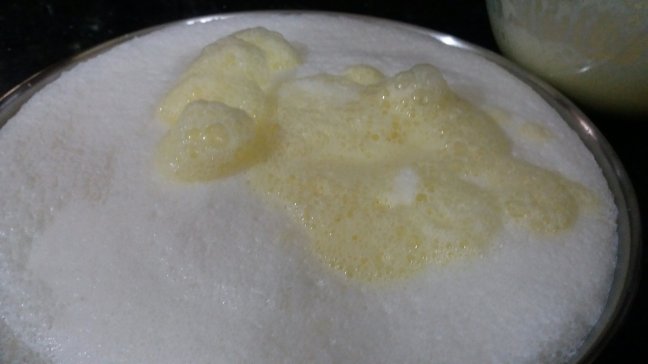 - Take a spoon and gently scoop the froth and keep in another bowl