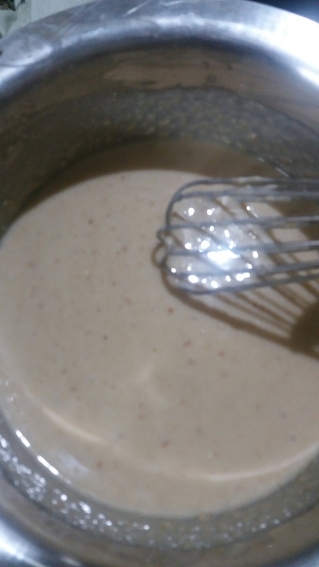 - Whisk it for 5 minutes. This is done so that puas come out fluffy