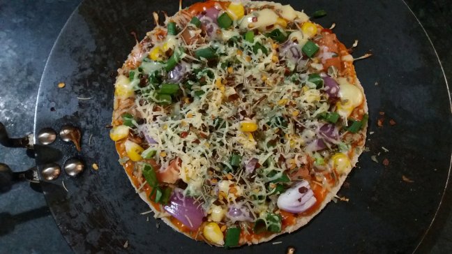 So…are you having leftover roti in the house and thinking how to finish them off,don’t you worry here’s roti pizza for you to save from wasting food.you only need basic ingredients for pizza toppings of your favourite one’s and most important cheese, without which any pizza is incomplete.it’s not always that we are left with leftover rotis ,but at times one has to deal with them.Have you heard that leftover rotis are good for blood sugar and blood pressure. Around 50 years back or let me put it this way our grannies would always eat leftover food in their breakfast, this was practiced in our villages, even my mother in law has the habit of eating leftovers which are called kaleva in Purvanchal. As we all know are ancestors knew it best that’s the reason they did not deal with so many diseases. Now a days eating leftovers is not considered cool or it effects one’s status symbol, how foolish isn’t it.instead of wasting food,one should consume them.as it is there are people dying for and we are the blessed one’s to have are 2 times meal.