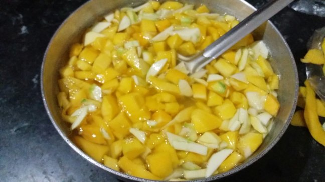 • Boil it for 10 minutes or till when you notice mangoes turning soft