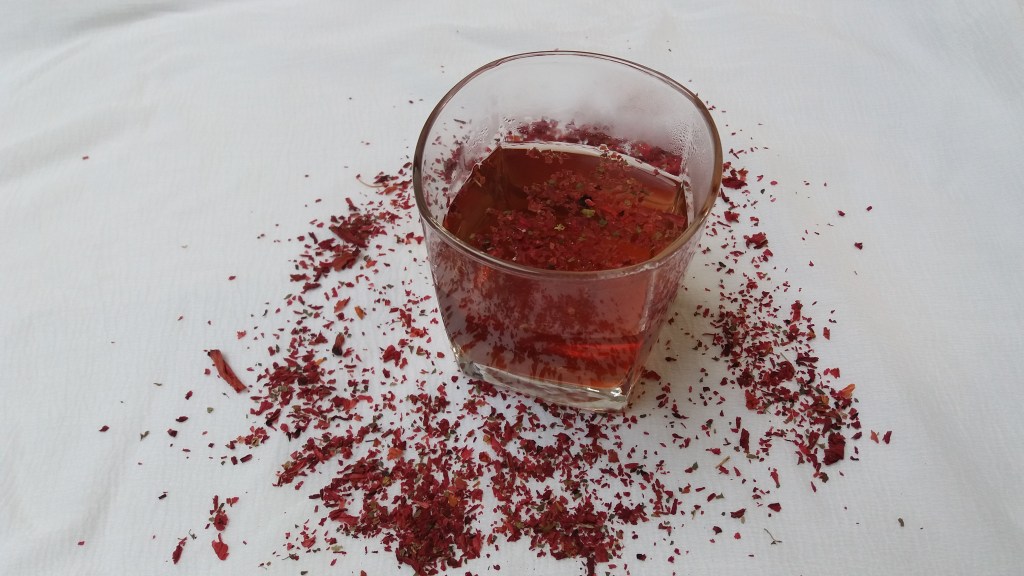 Coming to the recipe,here the petals of these flower are sun dried and stored in an air tight container.To enhance the taste of this tea do add some basil leaves to them.