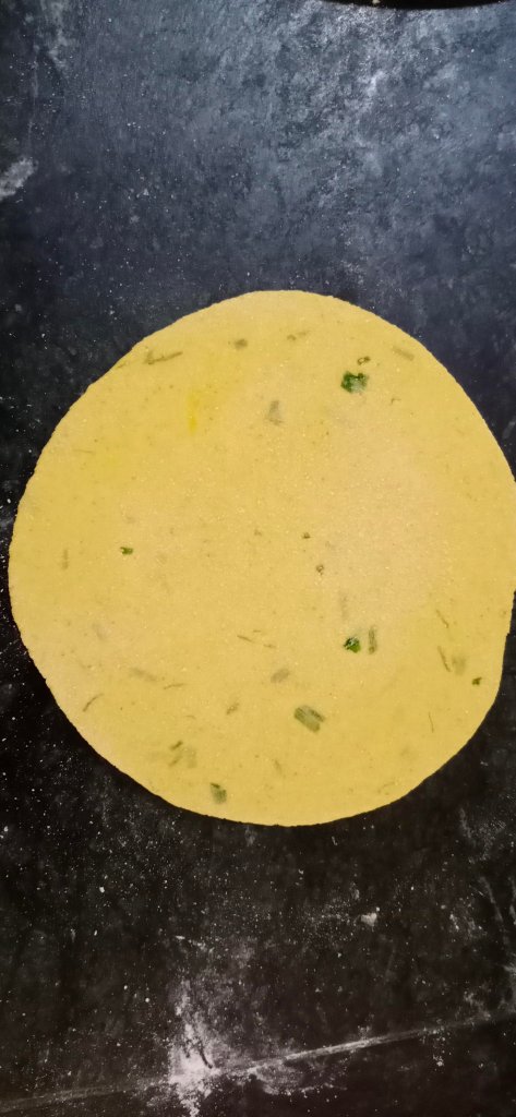 In this recipe we chop the greens and mix it with wheat flour,with some spices and make dough out of it.
