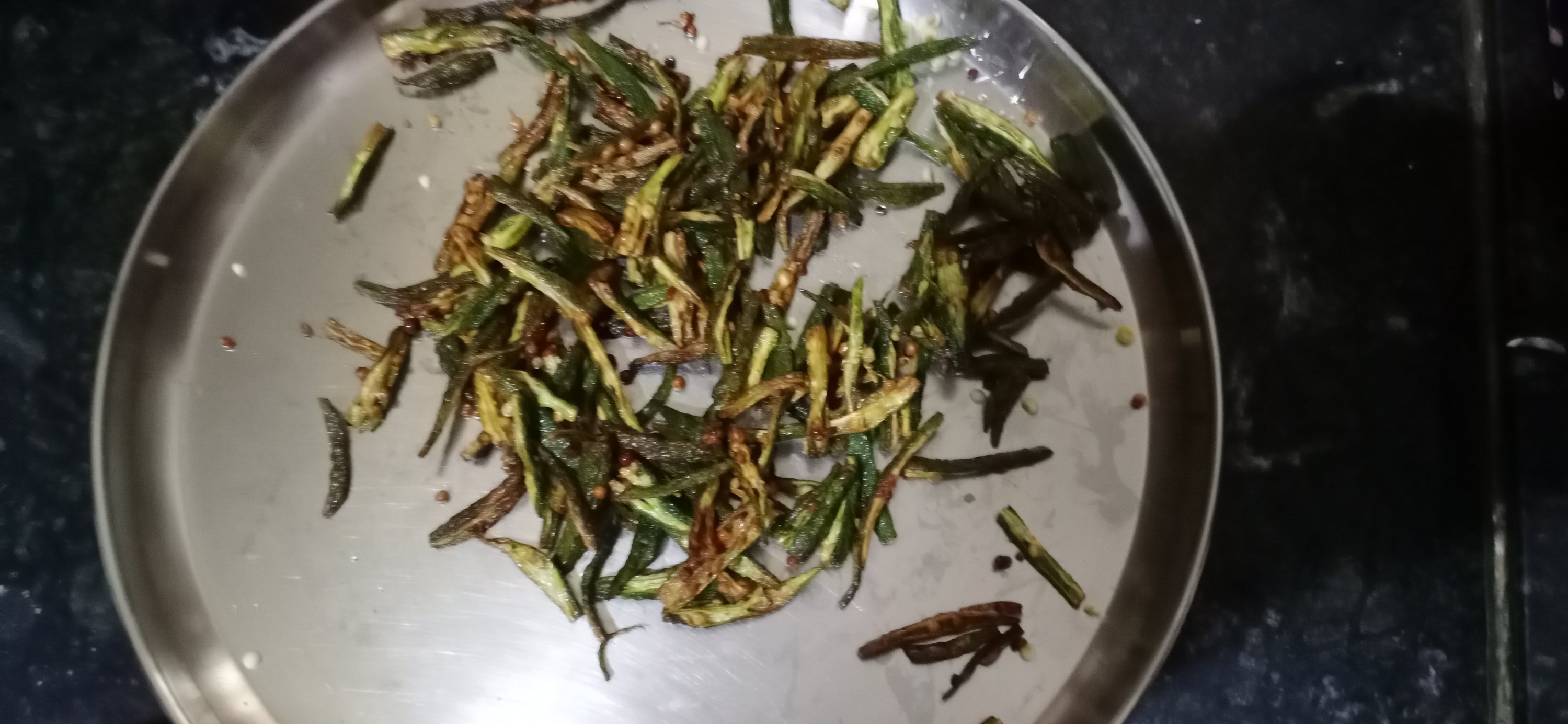 Basically here ladies finger is deep fried first and later mixed with Dahi and masala.