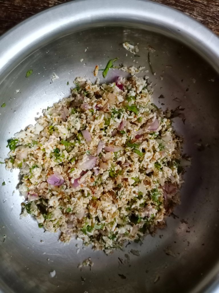 - Mix it well, the stuffing for kulcha is ready