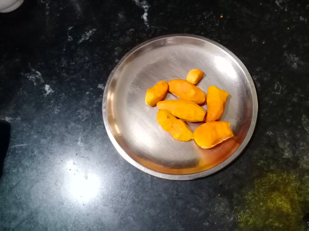 While peeling the skin of haldi you have to be careful with not wearing any whites and cover your hands with gloves, unless you are OK with all yellow palm.
