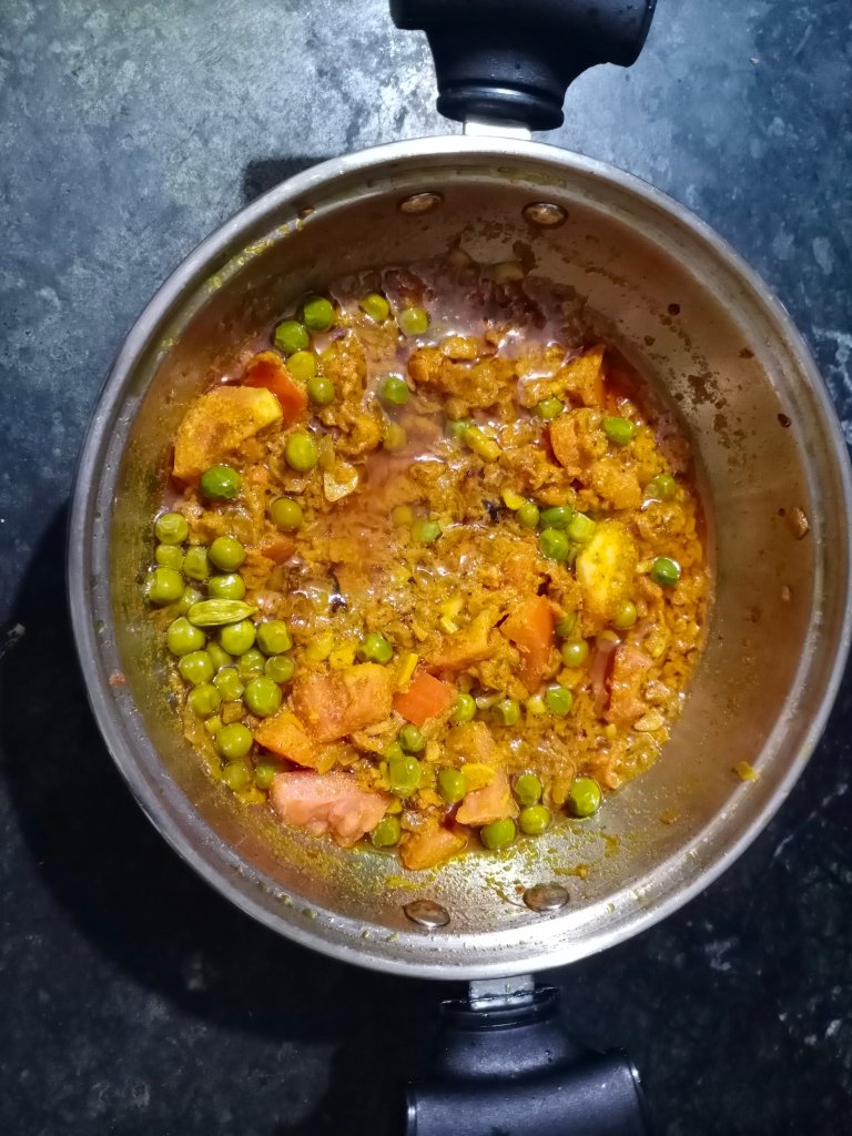 - Add kali mirch, lavang, green cardamom, dalchini and jeera let it splutter