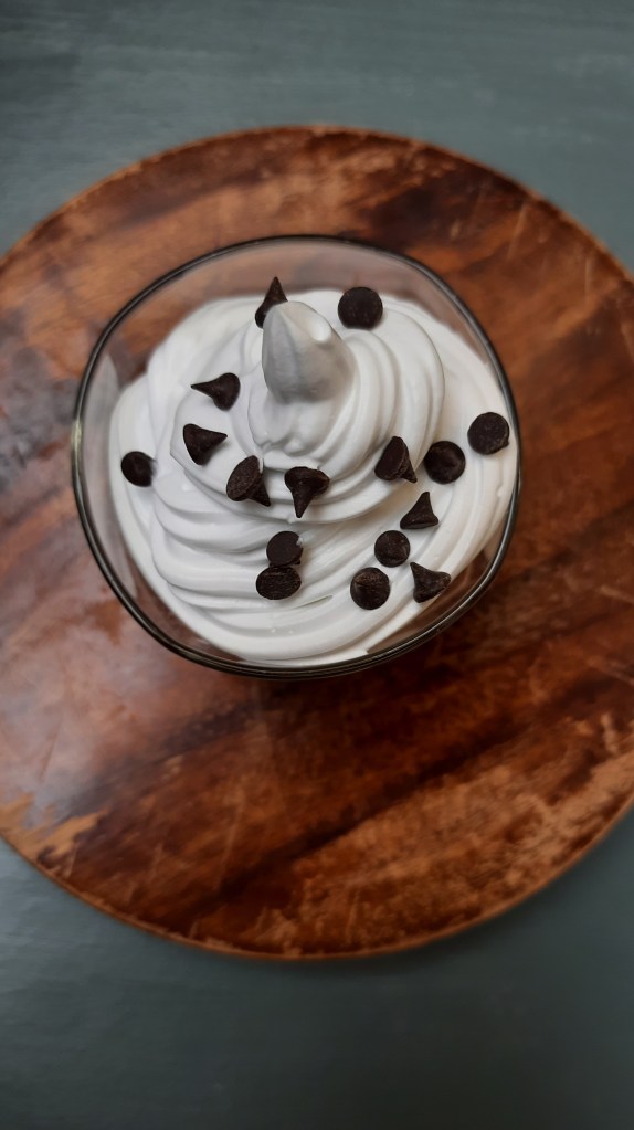 - If you wish, top it up with some generous amount of whipping cream and garnish with chocolate chips