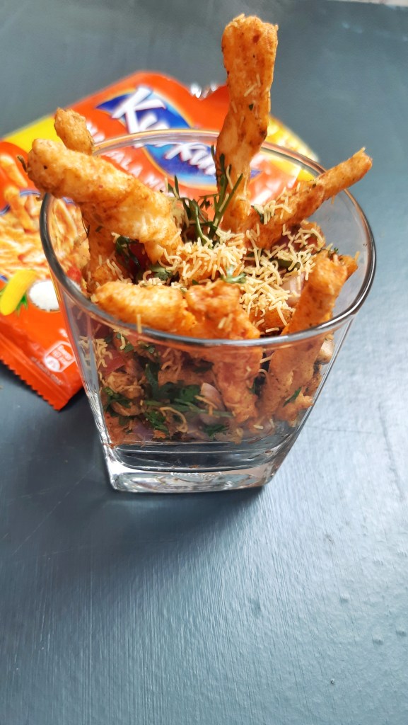 - Fill the kurkure bhel top with some sev and serve this to your guests or friends.