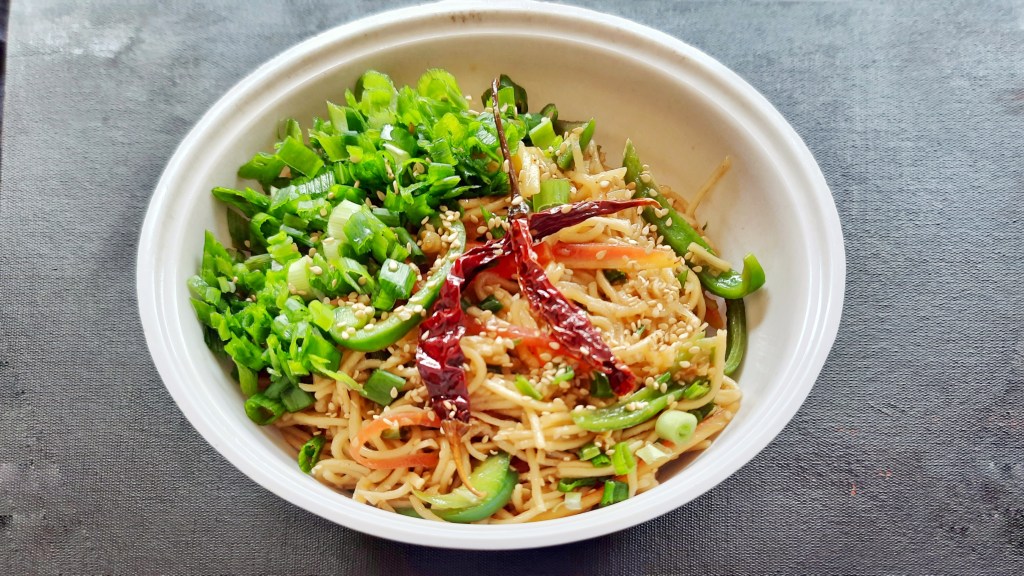 Use any ramen noodle or the Hakka noodle pack. If using ramen noodles then skip the tastemaker and use only the noodles.