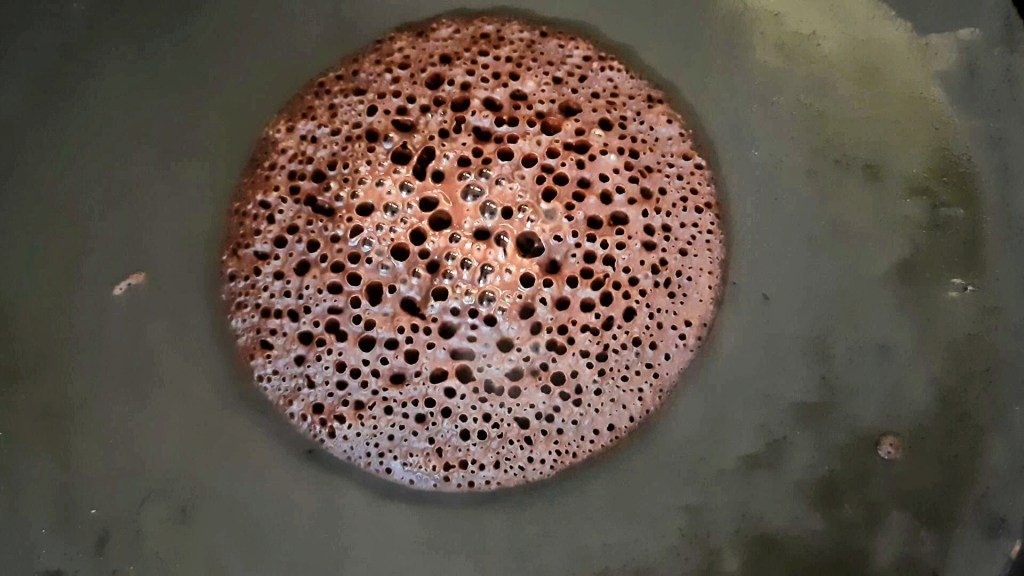 - Pour one ladle of the mixture let it cook you will notice bubbles