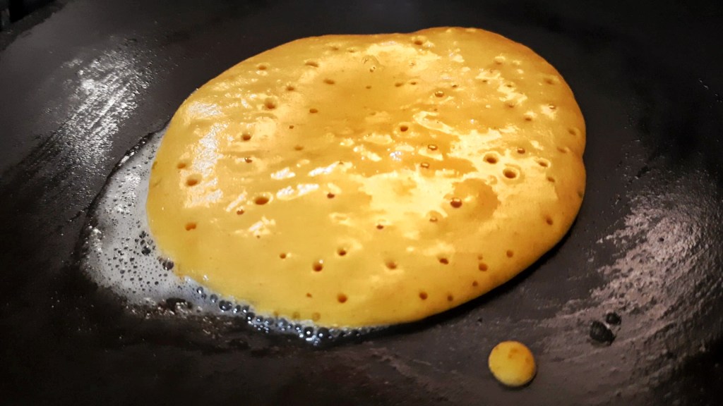- Heat a non-stick pan add butter pour one ladle full of the batter