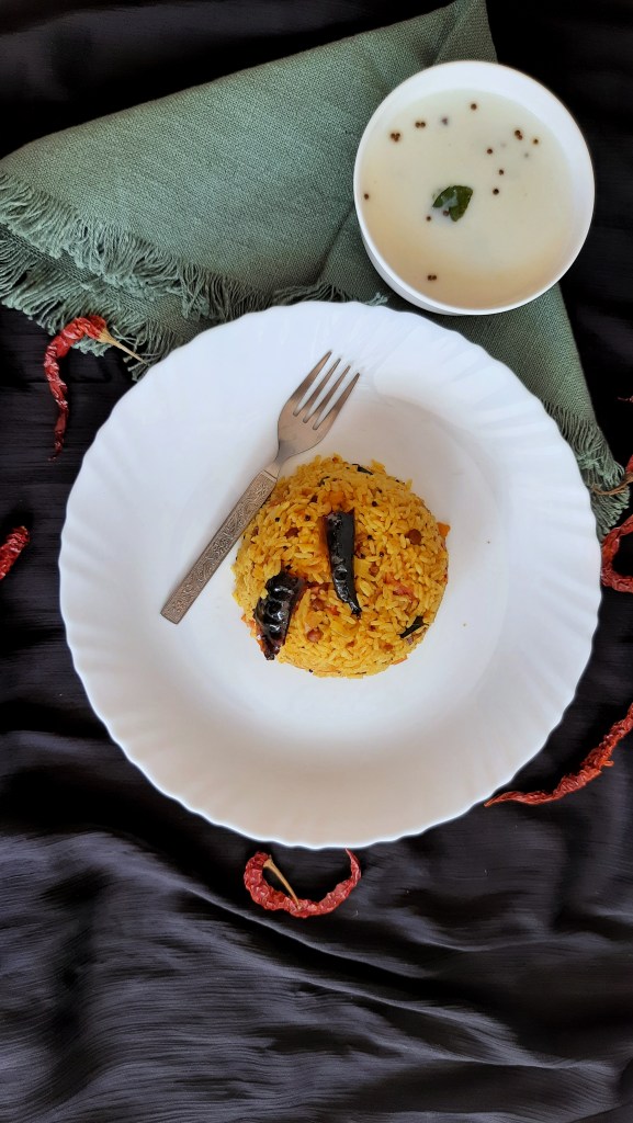 - Tomato rice is ready, serve hot with some curd.