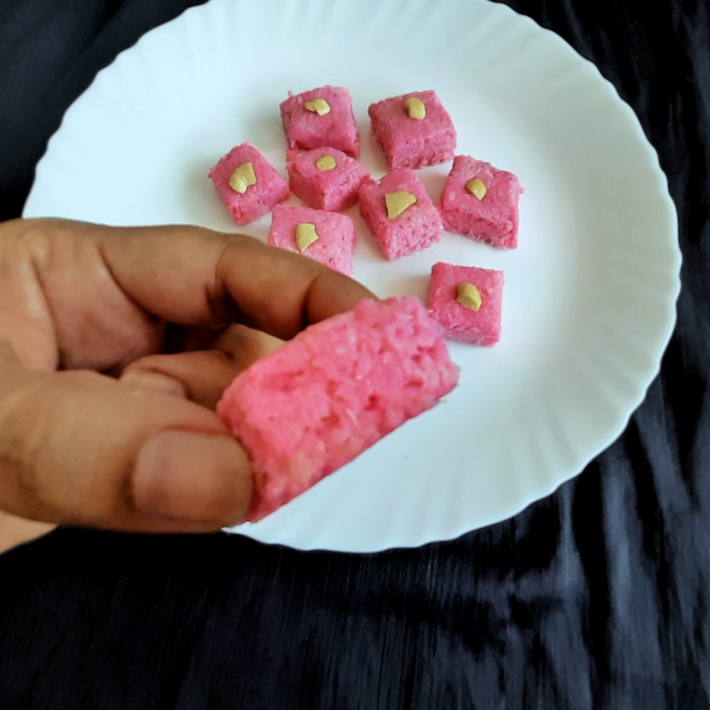 15 minutes in making and you are sorted click now Rose coconut burfi recipe