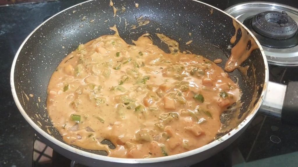 - Mix it well Add mayonnaise, red chilli sauce and tomato sauce with salt fry it