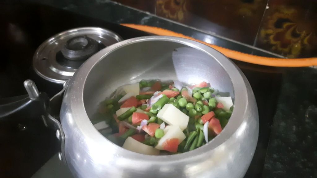 - 2 cups mixed vegetables ( carrots, French beans, potato, green peas, capsicum)