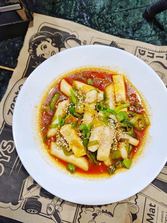 If you love korean food but enjoy adding your own desi touch, this Tteokbokki(spicy rice cakes) recipe is for you! It’s a perfect fusion of korean street food flavours with Indian ingredients like paneer and capsicum, making it rich, flavourful and irresistibly comforting.
